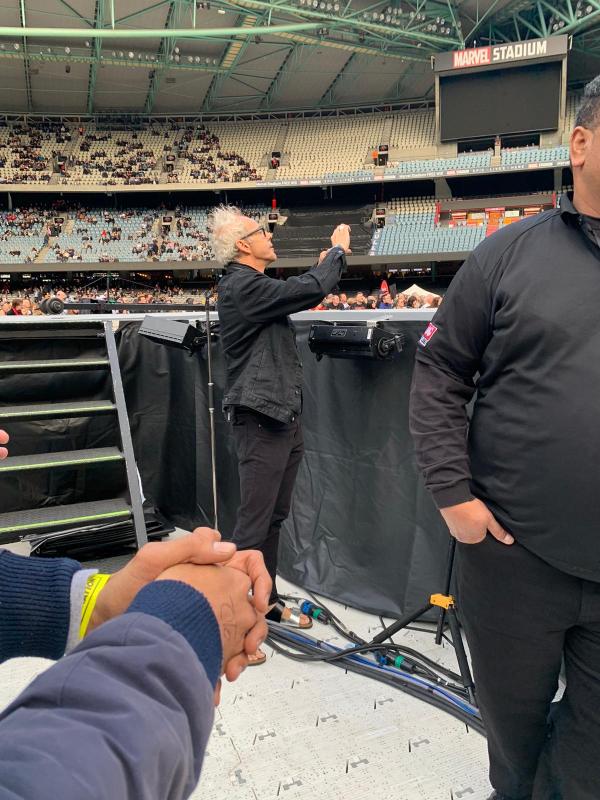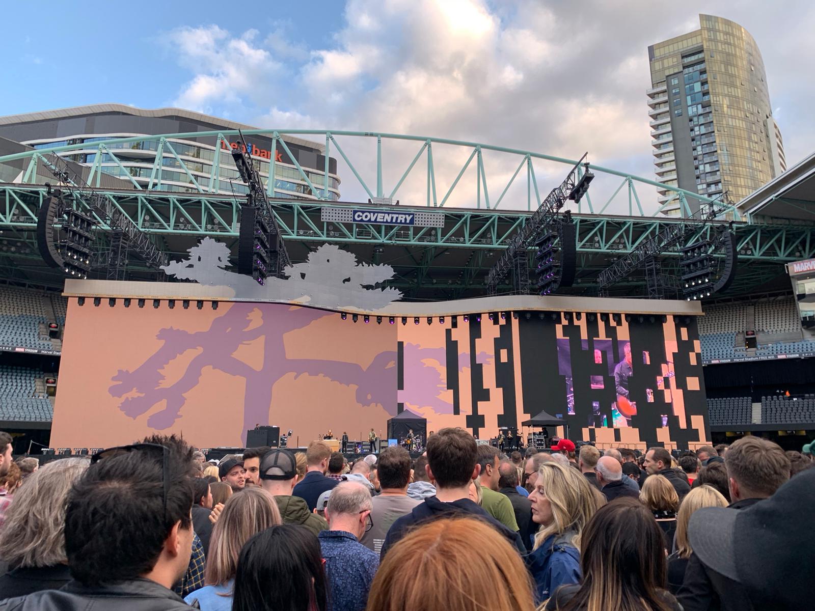 Obwohl nur eine Regenwahrscheinlichkeit von 10% angekündigt war, musste vor In God's Country dann tatsächlich das Dach des Marvel Stadium geschlossen werden. Ab der B-Seite von The Joshua Tree spielten U2 somit quasi die erste Indoor Show auf dieser Tournee. Wie bereits bei der zweiten Auckland Show scherzte Bono vor Trip Through Your Wires über die Mitgliedschaft von Edge und Larry in der Country Band The Drifting Cowboys zu Jugendzeiten. Edge antwortete, dass die Bezahlung dort damals deutlich besser gewesen sei als bei U2: '11 Pounds and some free drink". Larry bedankte sich bei Bono und spielte kurz einen Foxtrot an, den er bei den Drifting Cowboys gelernt hatte. Adam äußerte sich ebenfalls: 'I didn't have any ambition to join the Cowboys.' - Bono: 'I didn't either'.