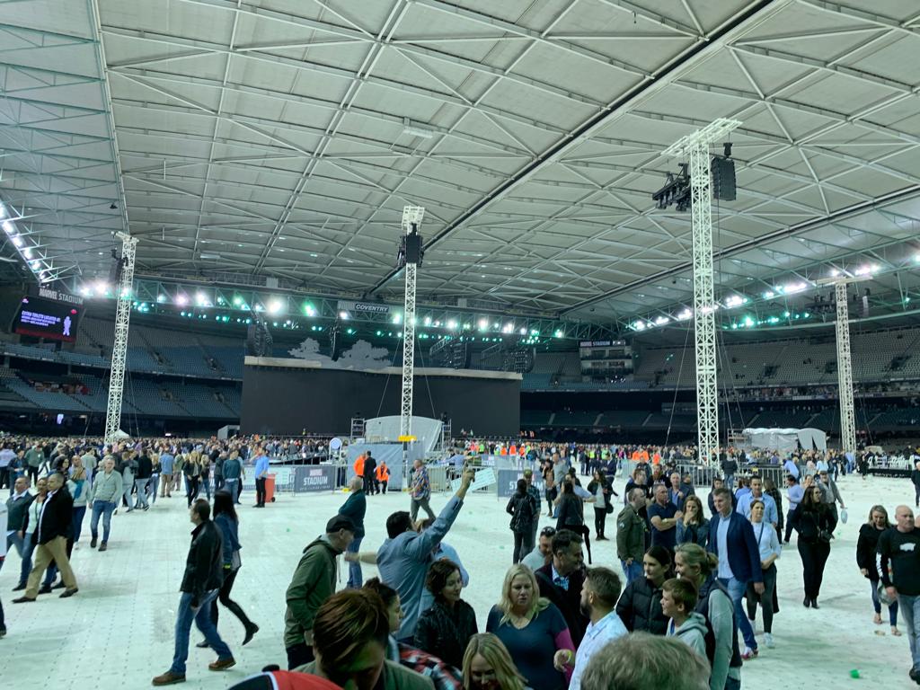 Nachdem das Dach geschlossen wurde, gab es wohl kurzfristige Probleme mit der Soundqualität, die man aber schnell in den Griff bekam. Im hinteren (nunmehr Hallen-) Teil hallte es aber nach Aussage unserer Kollegen vor Ort ziemlich. Nach dem Ende des Joshua Tree Blocks hatten einige damit gerechnet, dass Desire in die Setlist rutschen würde, nachdem der Song im Soundcheck gespielt worden war, die Band hielt jedoch an Angel Of Harlem fest.