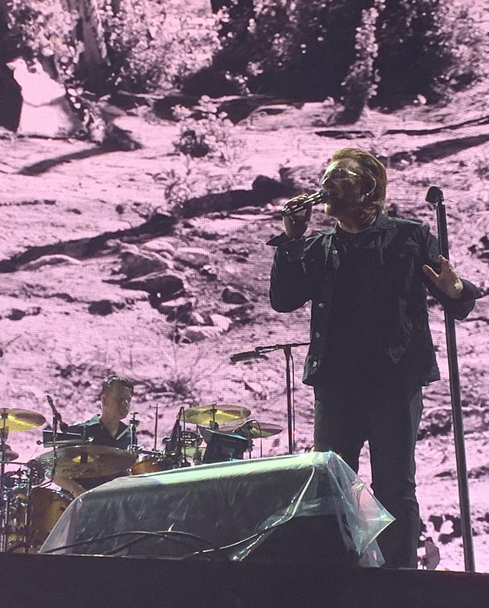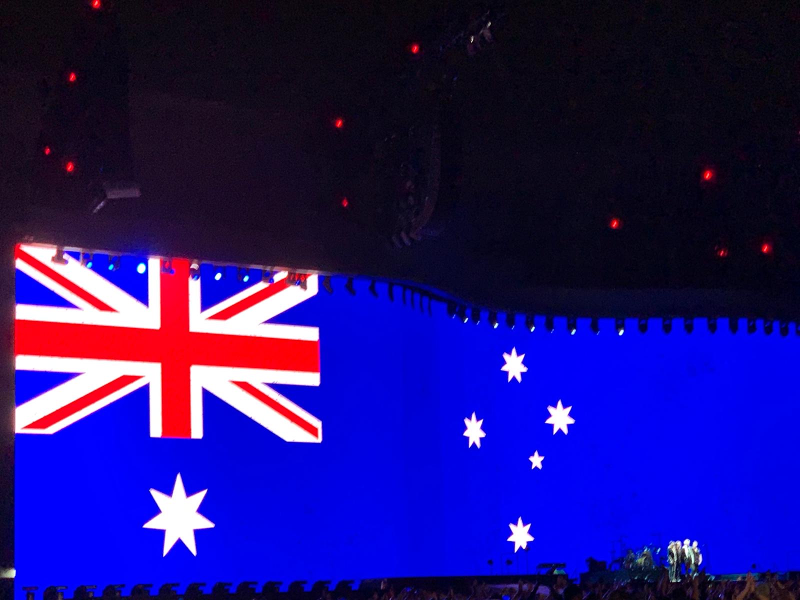 Das 2. Konzert in Sydney begann wieder relativ früh: Punkt 20:10 Uhr Ortszeit eröffnete Larry mit Sunday Bloody Sunday die Show. Es folgten wieder I Will Follow, New Year’s Day und Bad, das mit einem Waltzing Matilda Snippet erneut den Firefighters gewidmet wurde. Nach Pride folgte wie üblich der komplette The Joshua Tree Block.