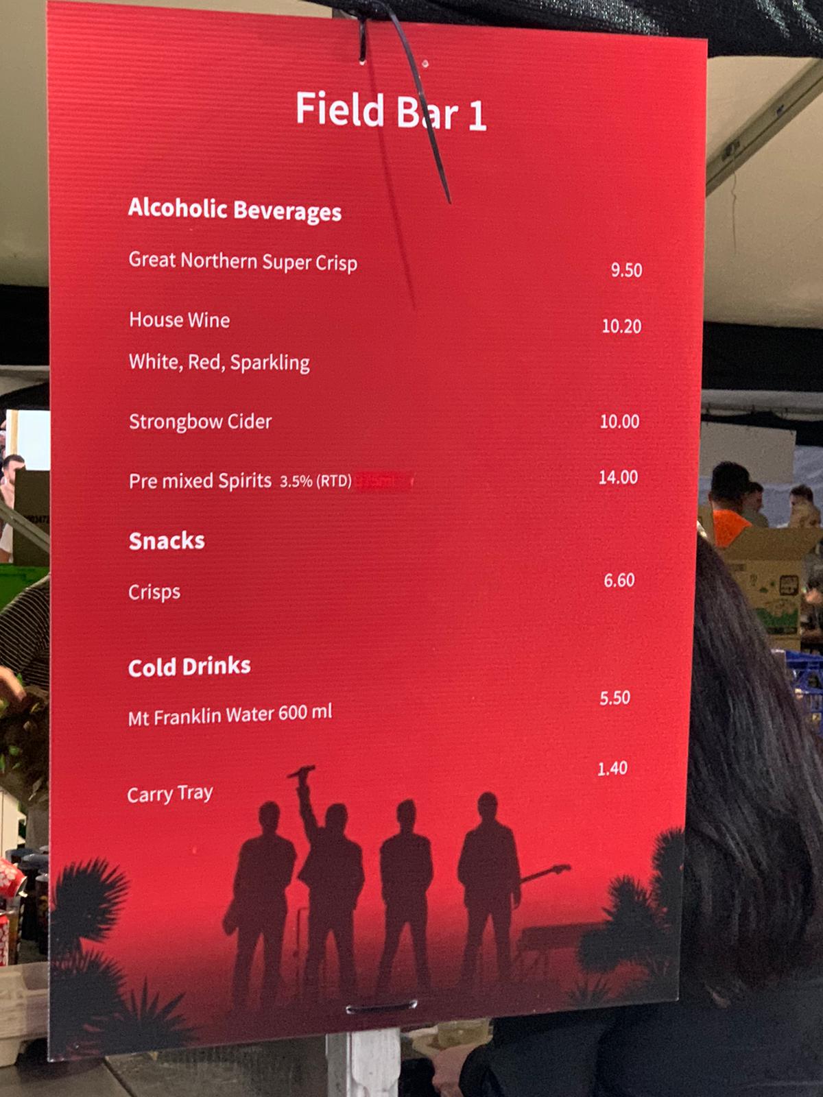 Vor und im Stadion: Für das leibliche Wohl war gesorgt (1 AU$ = ca. 60 €cent)