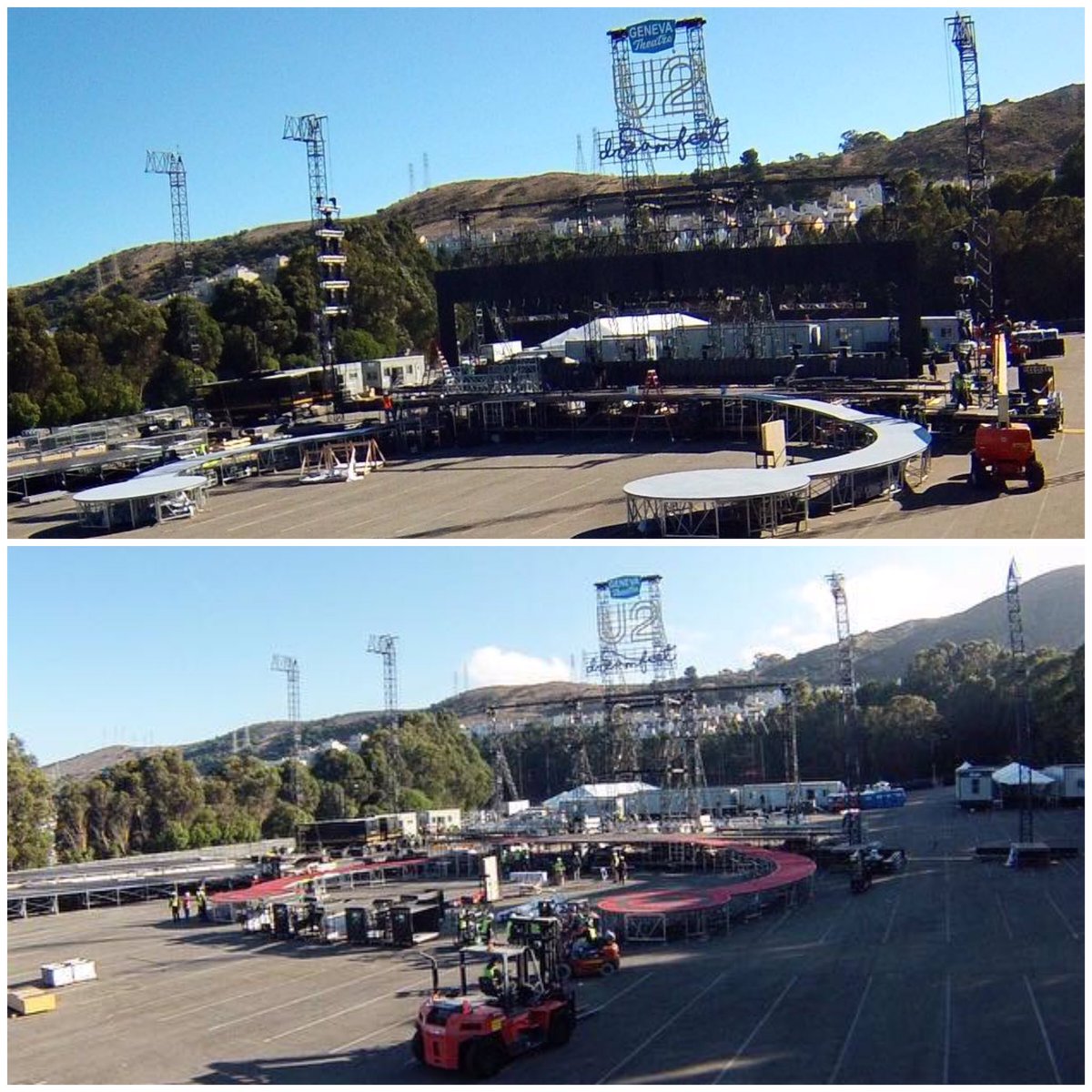 Entsprechend aufwendiger gestaltet sich der Bühnenaufbau, der bereits begonnen hat. Interessant ist dabei besonders, dass hierfür Elemente der Vertigo-Tour verwendet werden. Offenbar werden diese jedoch noch farblich umgestaltet. Unsere Freunde von U2Valencia haben bereits erste Bilder vom Aufbau (Klick) (Klick) getwittert – Muchas Gracias!