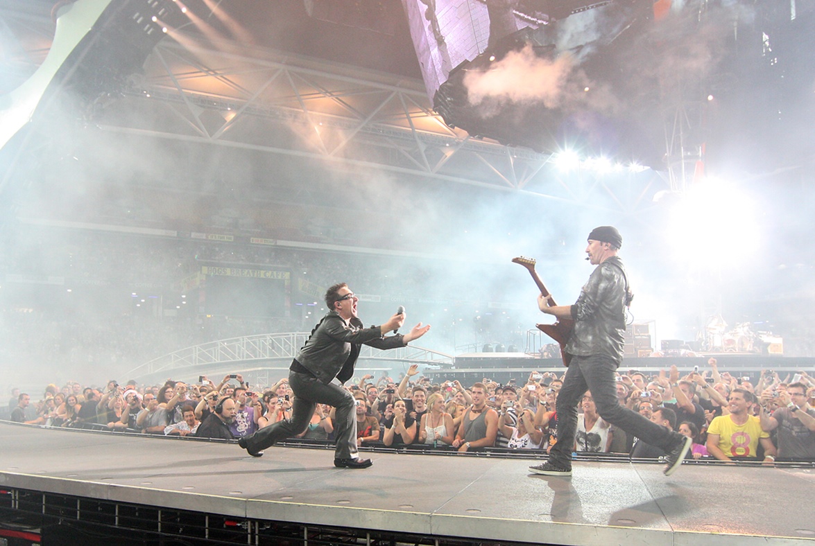Bono und The Edge während der 360° Tour in Brisbane (Foto credit: Suncorp Stadium)