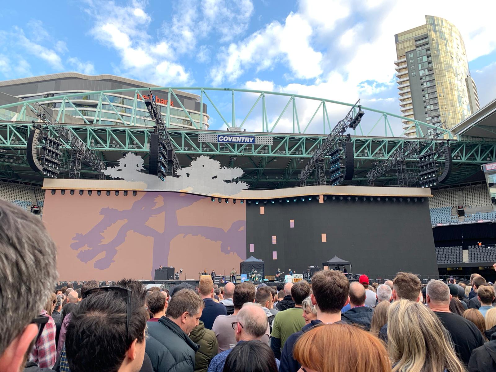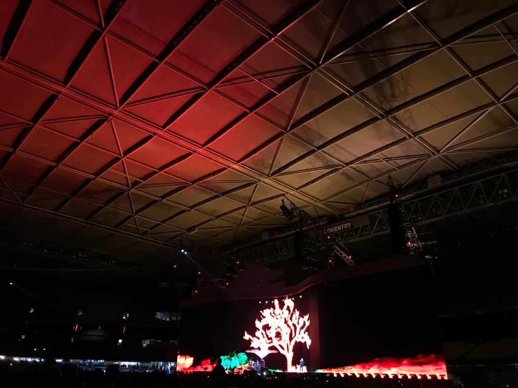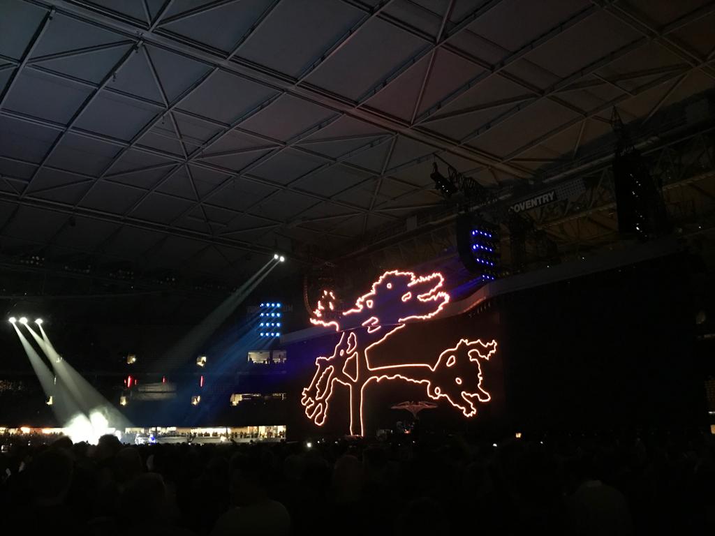 Nachdem das Dach geschlossen wurde, gab es wohl kurzfristige Probleme mit der Soundqualität, die man aber schnell in den Griff bekam. Im hinteren (nunmehr Hallen-) Teil hallte es aber nach Aussage unserer Kollegen vor Ort ziemlich. Nach dem Ende des Joshua Tree Blocks hatten einige damit gerechnet, dass Desire in die Setlist rutschen würde, nachdem der Song im Soundcheck gespielt worden war, die Band hielt jedoch an Angel Of Harlem fest.