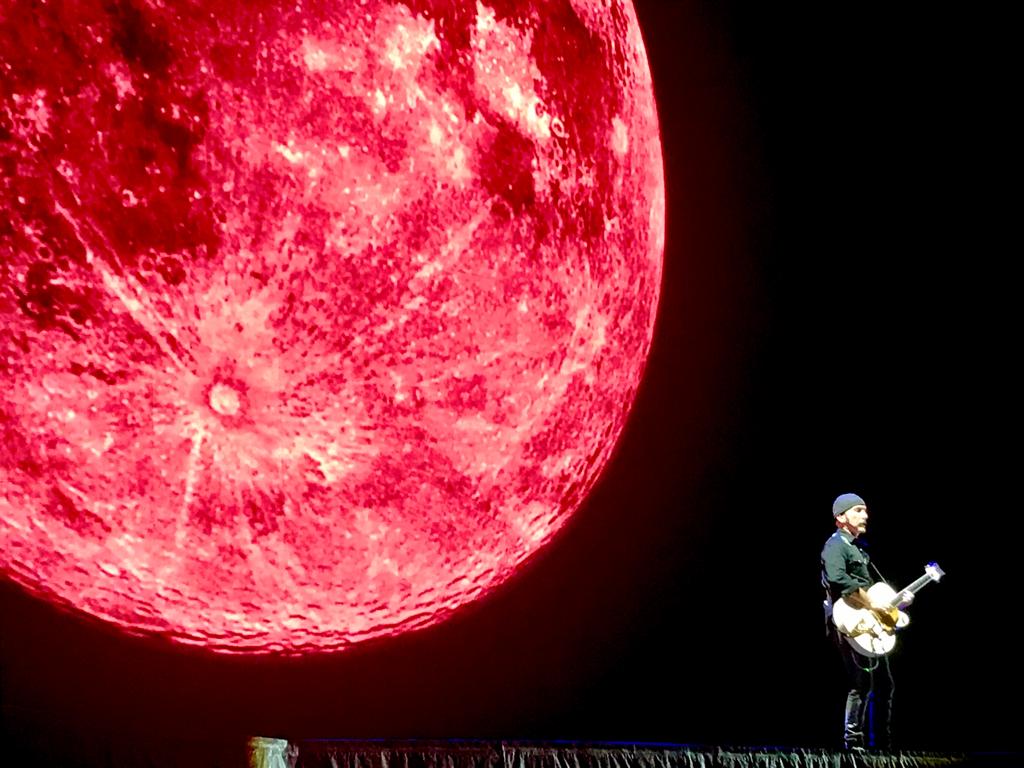 Um 20:32 Uhr Ortszeit eröffenet das Whole Of The Moon Intro die Show. Eine wichtige Frage des Abends war zum Glück recht schnell beantwortet: Bad fand zurück in die Setlist, wodurch vor dem Joshua Tree Block wieder fünf Songs gespielt wurden. (SBS, I Will Follow, New Year's Day, Bad, Pride): 'Thank you for the rain, Rain is bringing us together for an epic night of Rock'n Roll'. Bono erinnerte an den Tod von Michael Hutchence, der sich an diesem Abend zum 22. Mal jährte und sang als Snippet Never Tear US Apart.